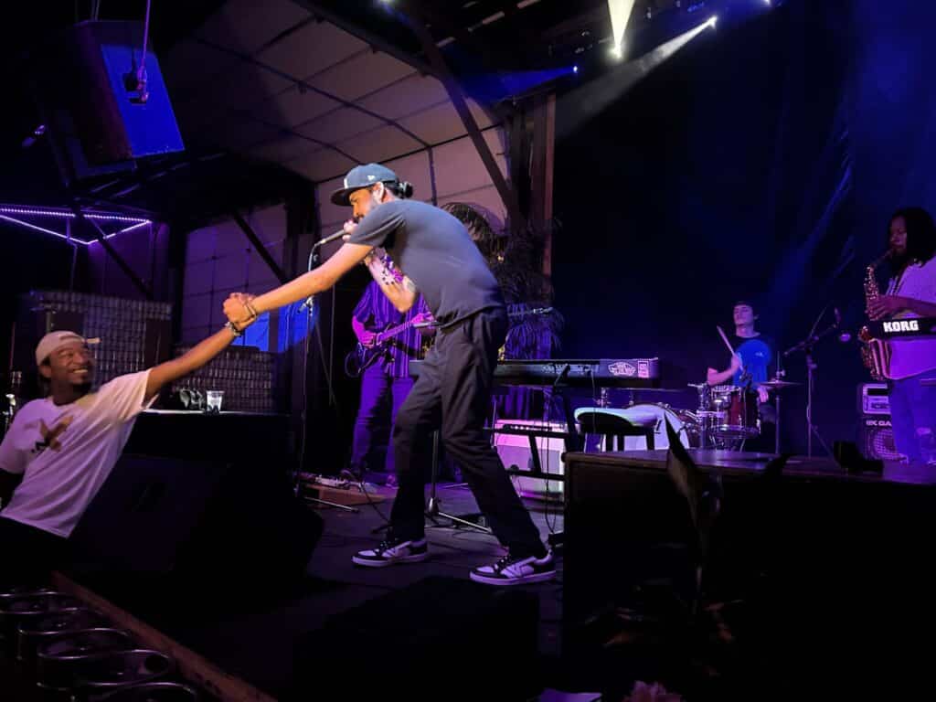 Following Matt was BadTalks, accompanied by Rural Resonance as his DJ. BadTalks, aka Tyler, has become a dear homie of mine over this past year and it’s always a pleasure to watch him perform. His sets are always personal and always focus on crowd engagement and the “vibes.” His production, lyricism, and vocals make for tracks that shine in live performances.