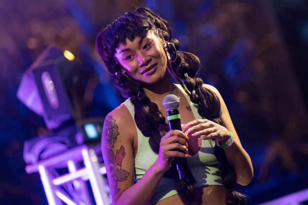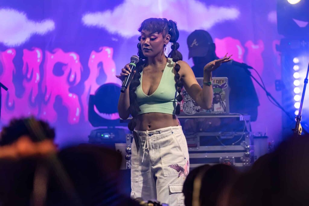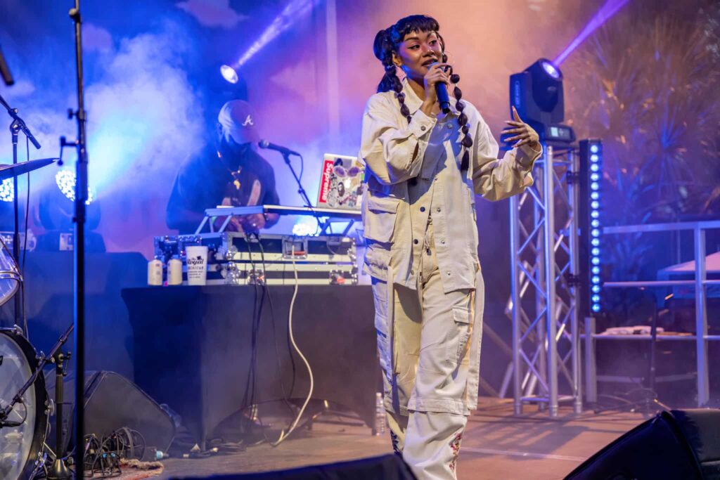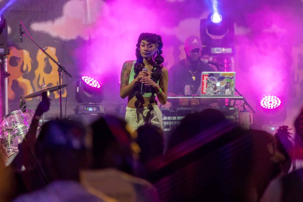 Mike Brown’s R&B influence gracefully ushered in another gifted artist by the name of SunRhé. SunRhé’s performance was nothing short of raw, kinetic, talent. Beyond her talented voice, you can feel the authenticity and open vulnerability pulse off stage. She performed her solo singles like “Fire” and even gave us a few numbers off of Lavender. And as if it couldn’t get any better, SunRhé brought up Mo.Et and they performed as their group, Black Sun.