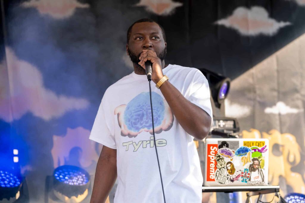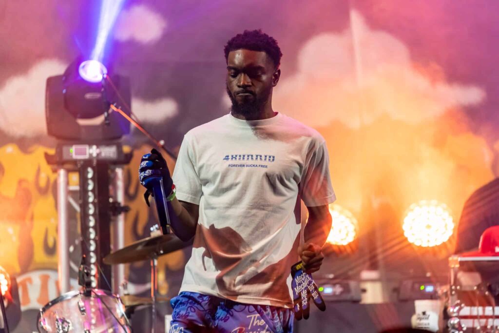 Finally, Curren$y hit the stage with a 3 piece band and brought it home in classic Fly Society fashion. I was very impressed to see the time and effort put into the performance. No backing tracks, other than a few blends of the instrumentals and the voices of the people chanting songs like “Michael Knight” and hits from album, Stoned Immaculate, in the crowd.