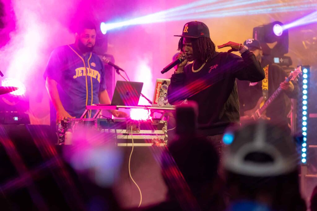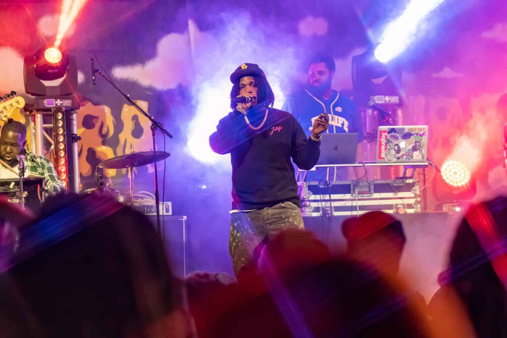 The unsung hero of the night, DJ IllaDell, stayed on the 1’s and 2’s all day and kept the crowd moving and engaged for the entirety of the show. Playing local music, billboard hits, classic rap and R&B and matching them with his tailored mixes, DJ IllaDell not only kept the function cohesive, but he also predicated Curren$y’s anticipated performance with a strong set of original mixes and jams.