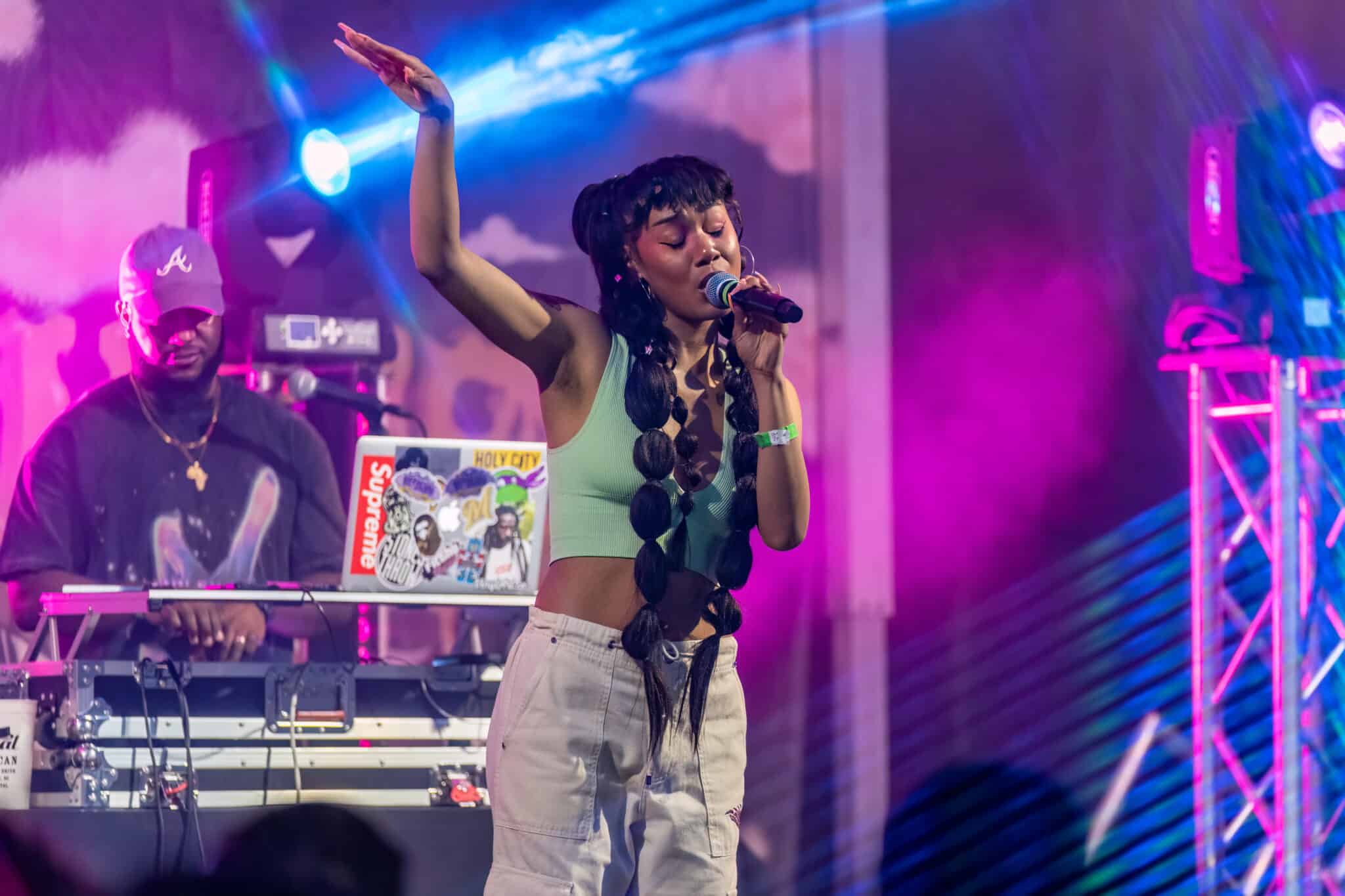 Mike Brown’s R&B influence gracefully ushered in another gifted artist by the name of SunRhé. SunRhé’s performance was nothing short of raw, kinetic, talent. Beyond her talented voice, you can feel the authenticity and open vulnerability pulse off stage. She performed her solo singles like “Fire” and even gave us a few numbers off of Lavender. And as if it couldn’t get any better, SunRhé brought up Mo.Et and they performed as their group, Black Sun.