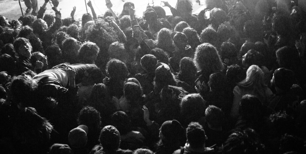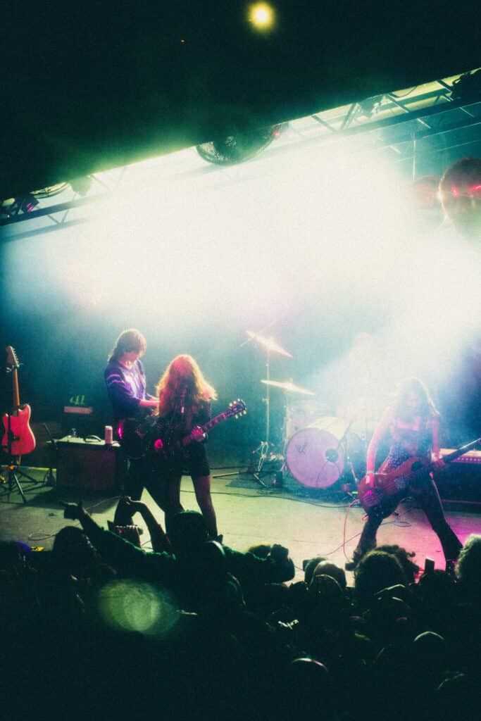 At one point, a young attendee jumped off the stage with a mic cable stuck in their belt, nearly pulling the entire mic stand off the stage with them. Either way, it’s all in the spirit of rock & roll, and the band didn’t seem to mind. From my vantage point up in the risers, it made the whole thing more exciting.
