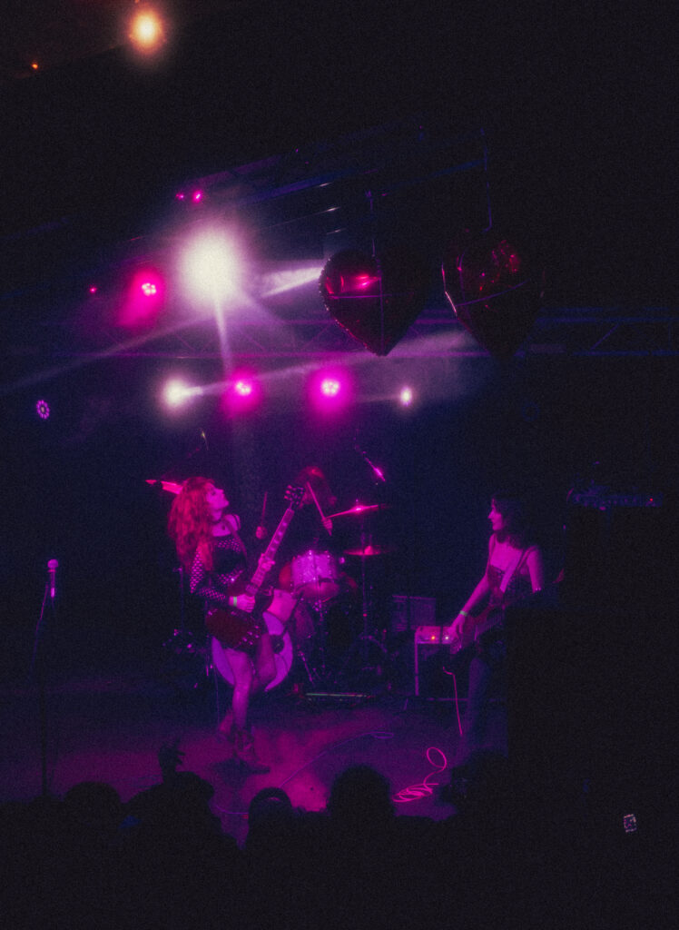 Die Spitz made a grand entrance, with a few friends coming out dressed in Valentine’s Day lingerie garb, straight out of the 1920s, followed by the band themselves. After a quick shout of something like, “Fuck yeah, we sold out the Mohawk” by lead singer and guitarist Ellie Livingston, they launched right into it.
