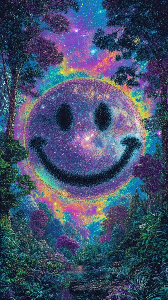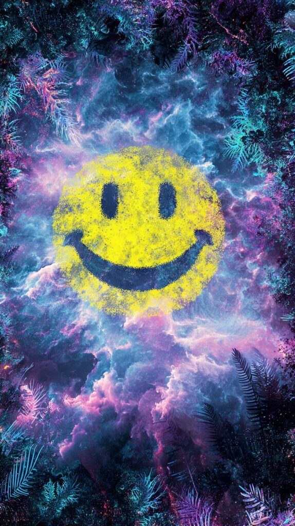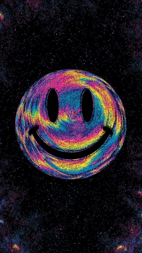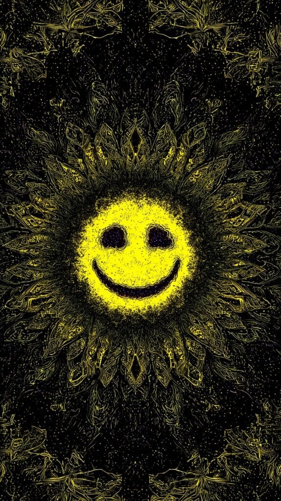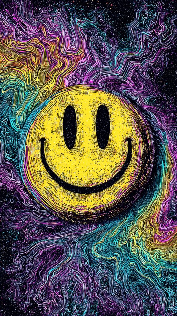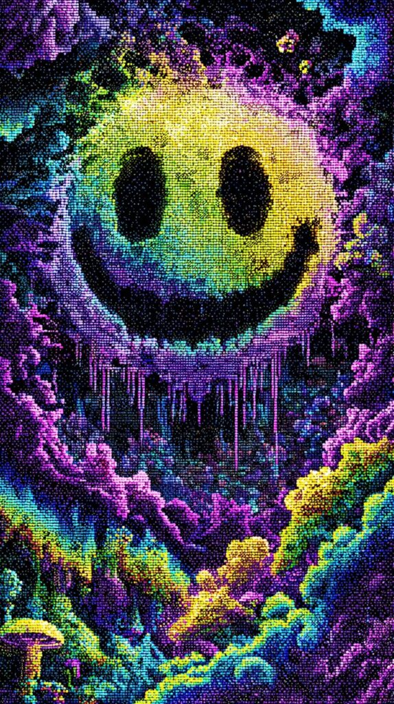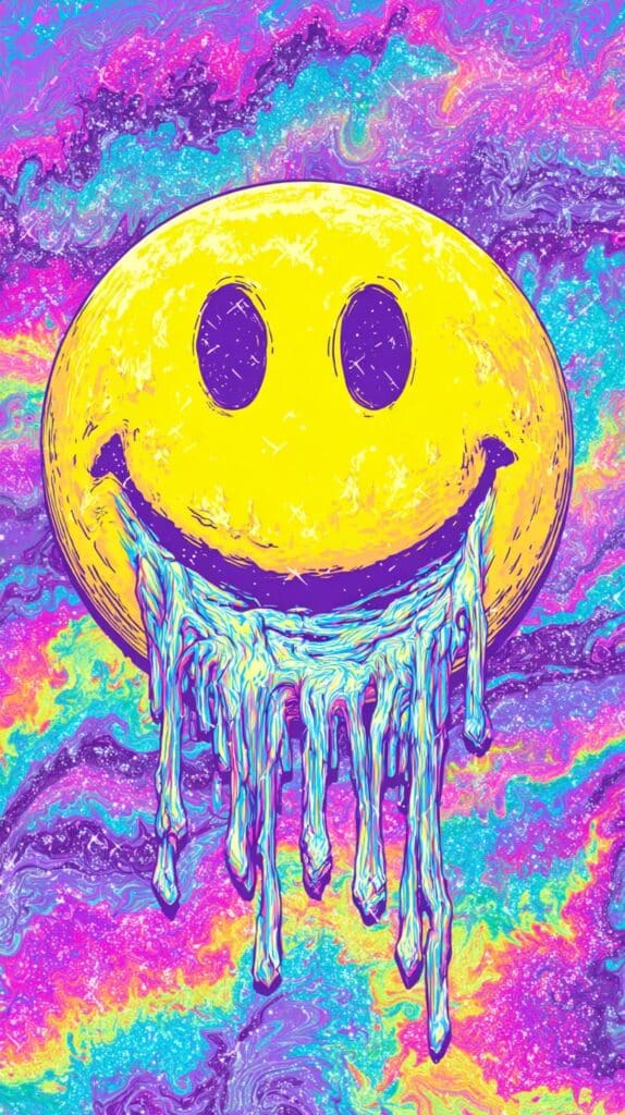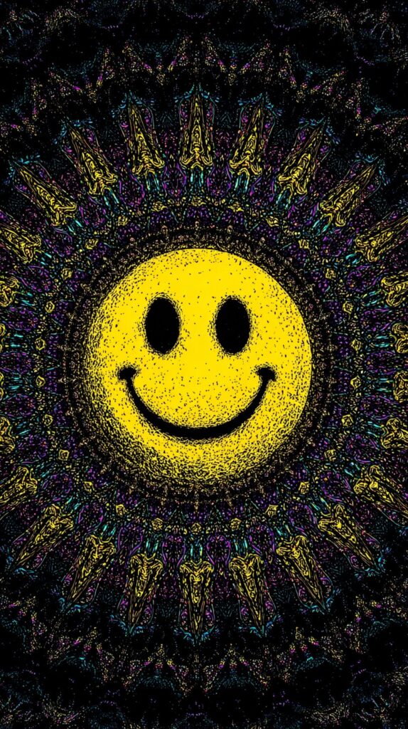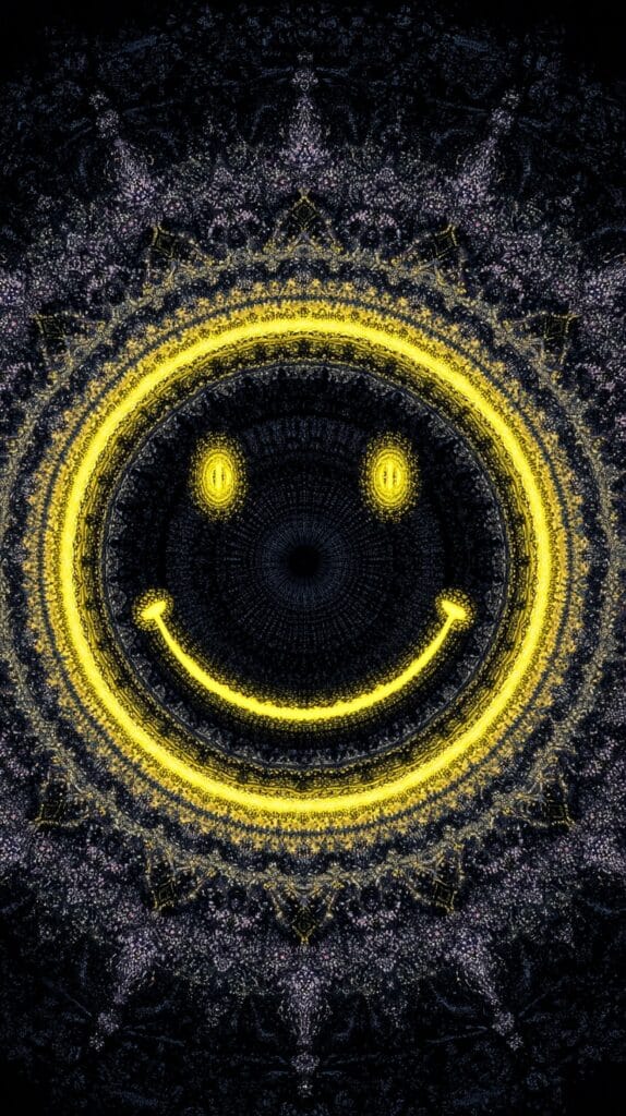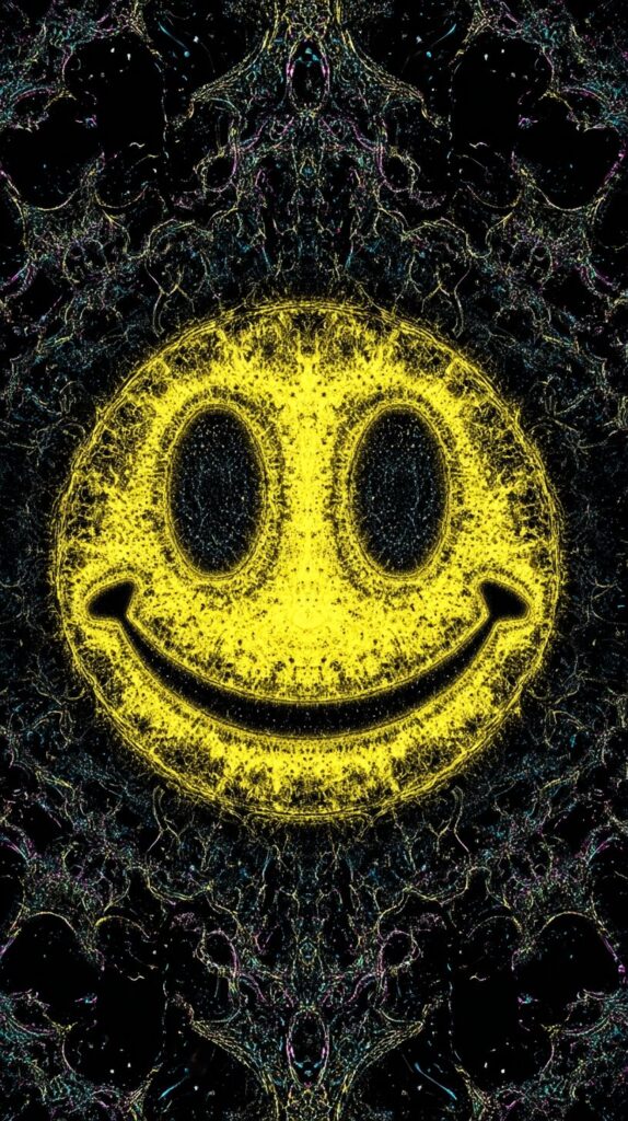 This page contains a collection of 50+ FREE trippy smiley face wallpaper images. All of these images are AI generated and created with Midjourney. They are free to use as long as you credit Extra Chill. The prompt for many of them is included in the caption, in case you want to conduct your own Midjourney experiments.