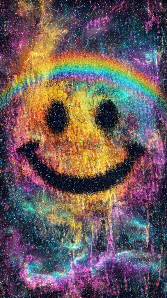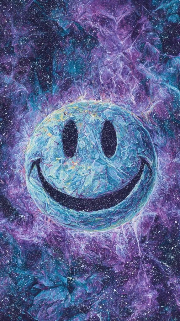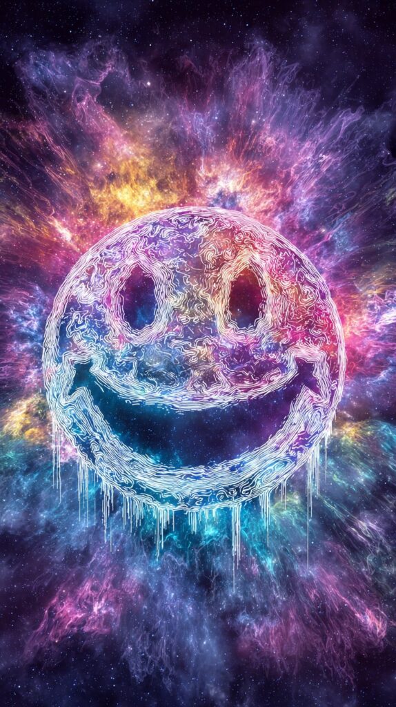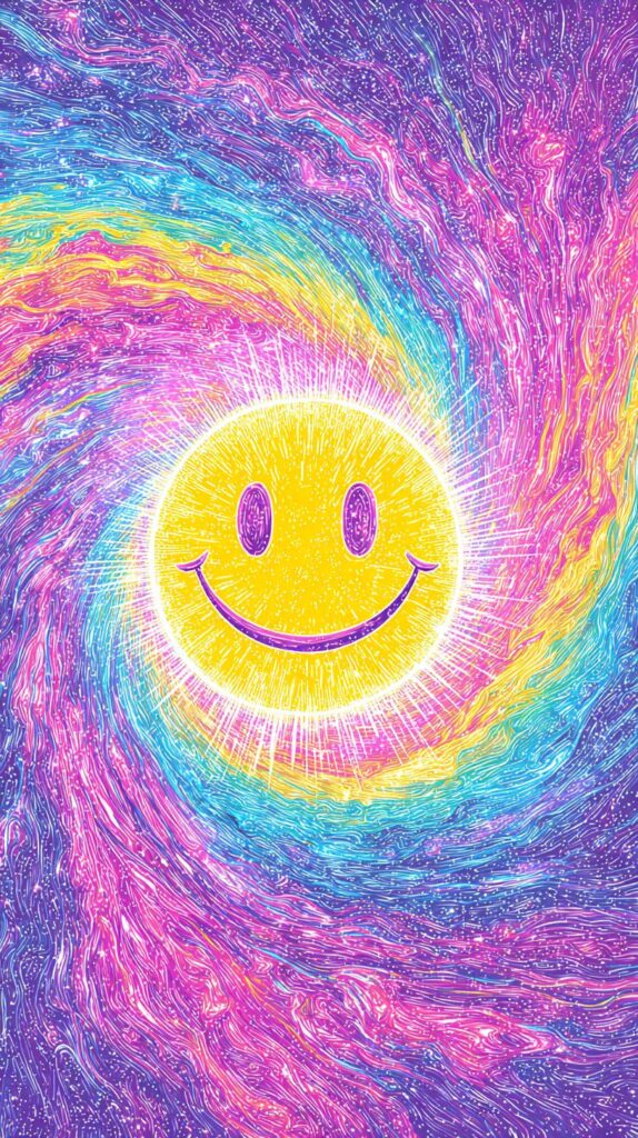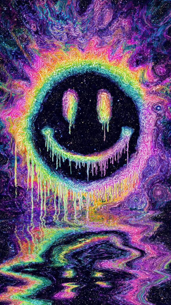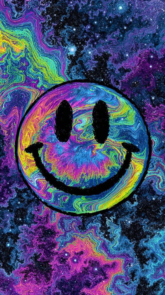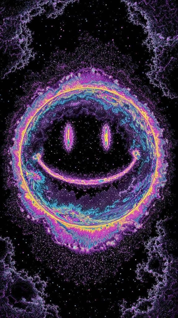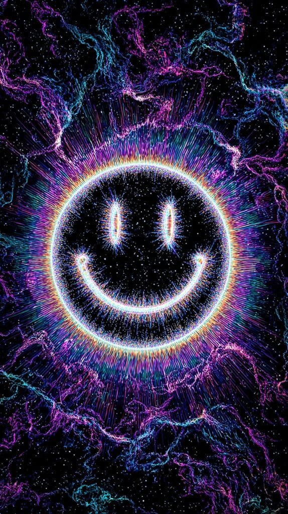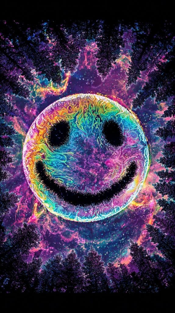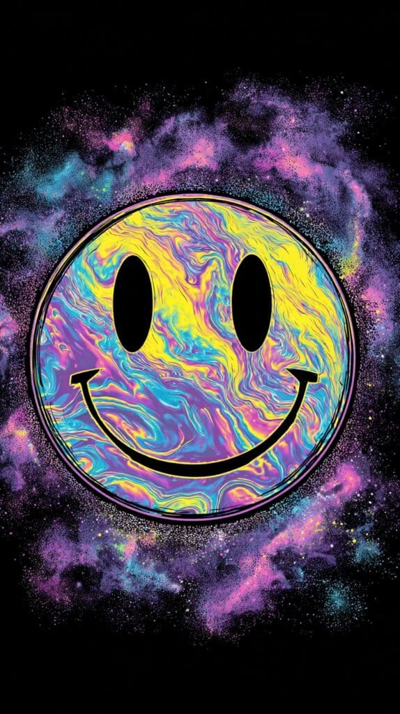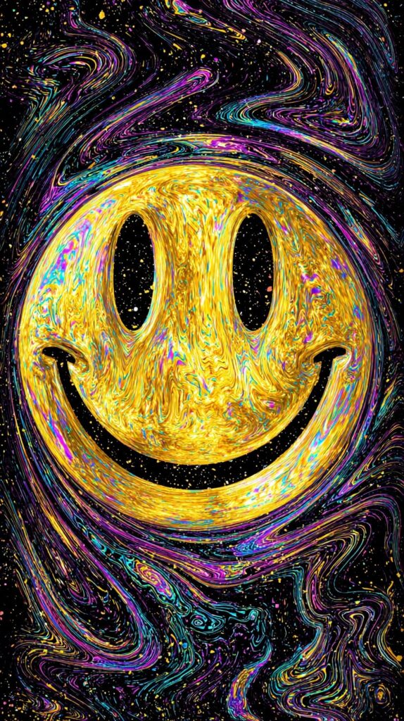 This page contains a collection of 50+ FREE trippy smiley face wallpaper images. All of these images are AI generated and created with Midjourney. They are free to use as long as you credit Extra Chill. The prompt for many of them is included in the caption, in case you want to conduct your own Midjourney experiments.