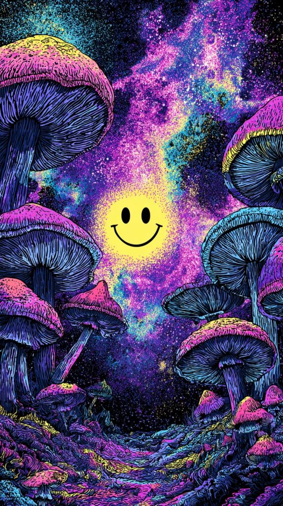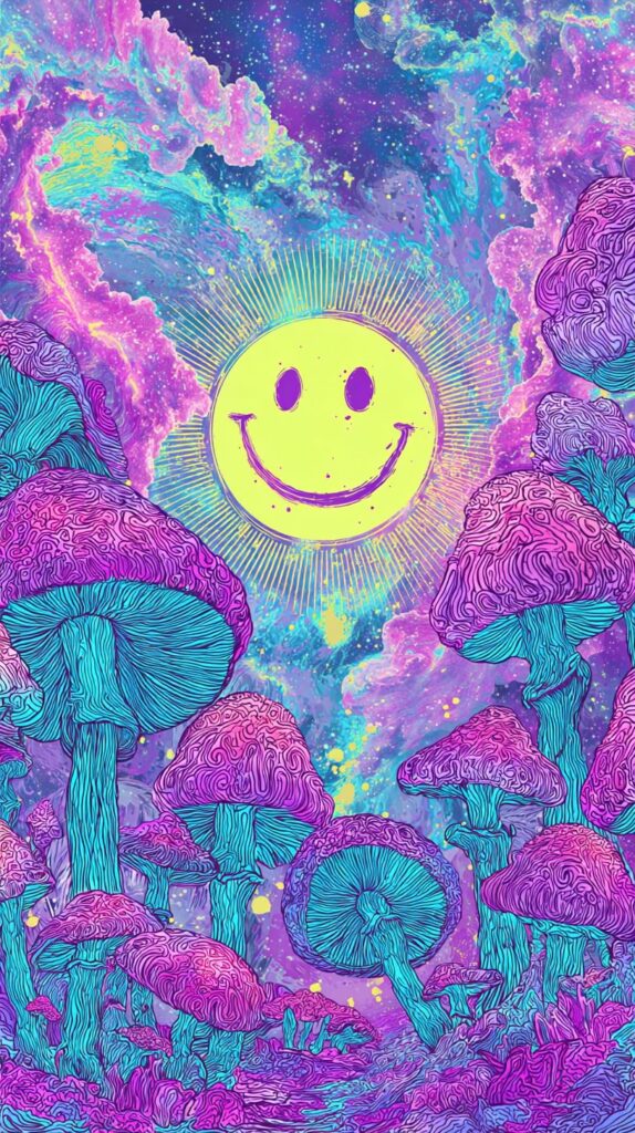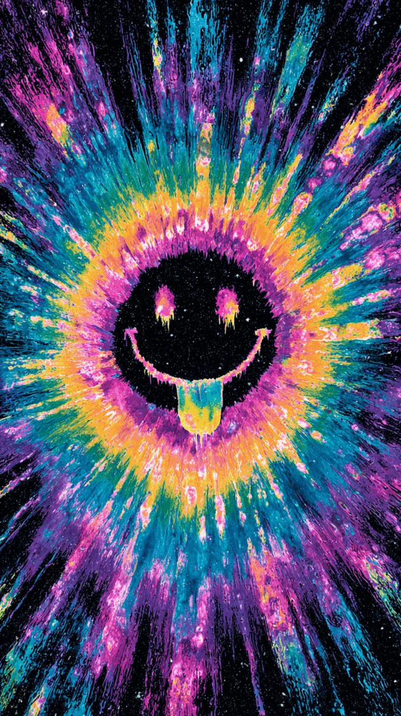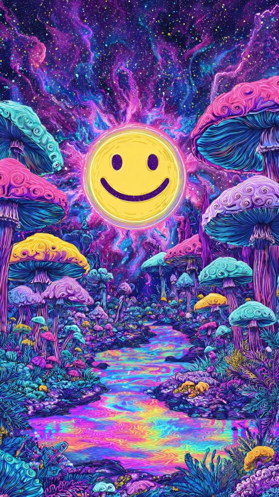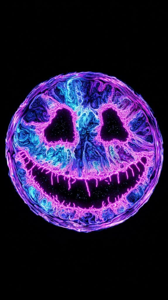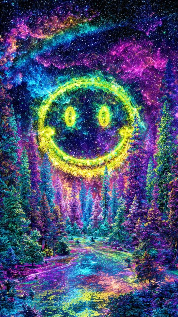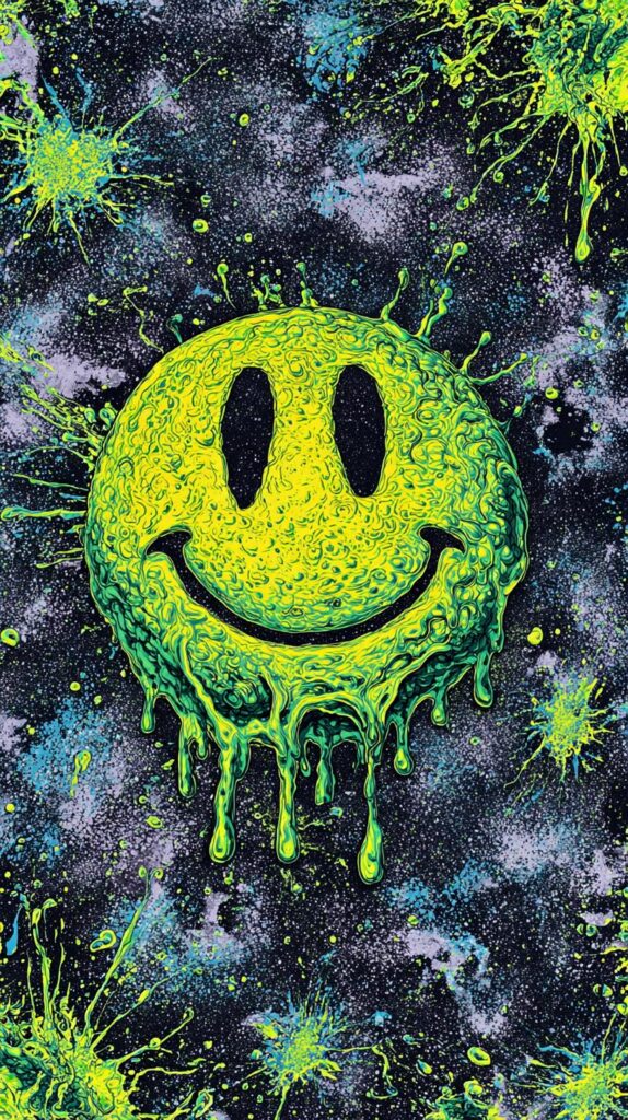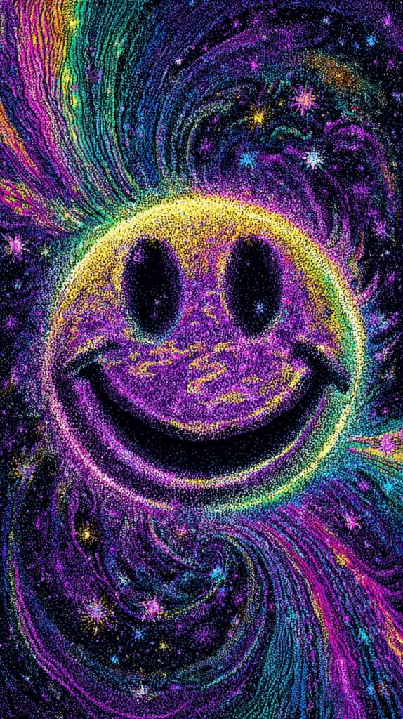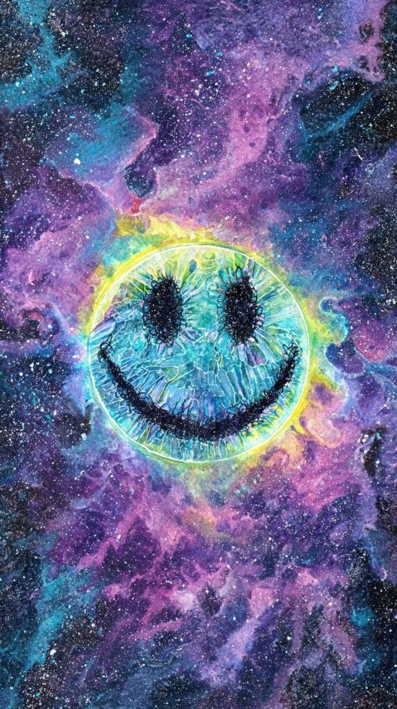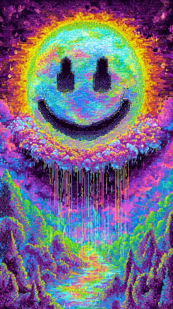 This page contains a collection of 50+ FREE trippy smiley face wallpaper images. All of these images are AI generated and created with Midjourney. They are free to use as long as you credit Extra Chill. The prompt for many of them is included in the caption, in case you want to conduct your own Midjourney experiments.