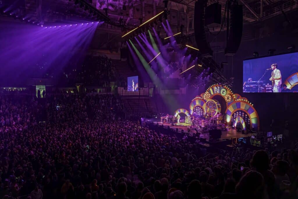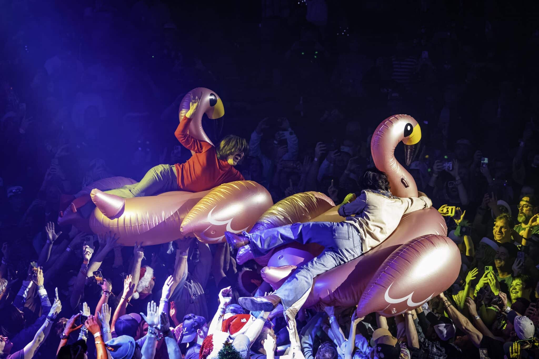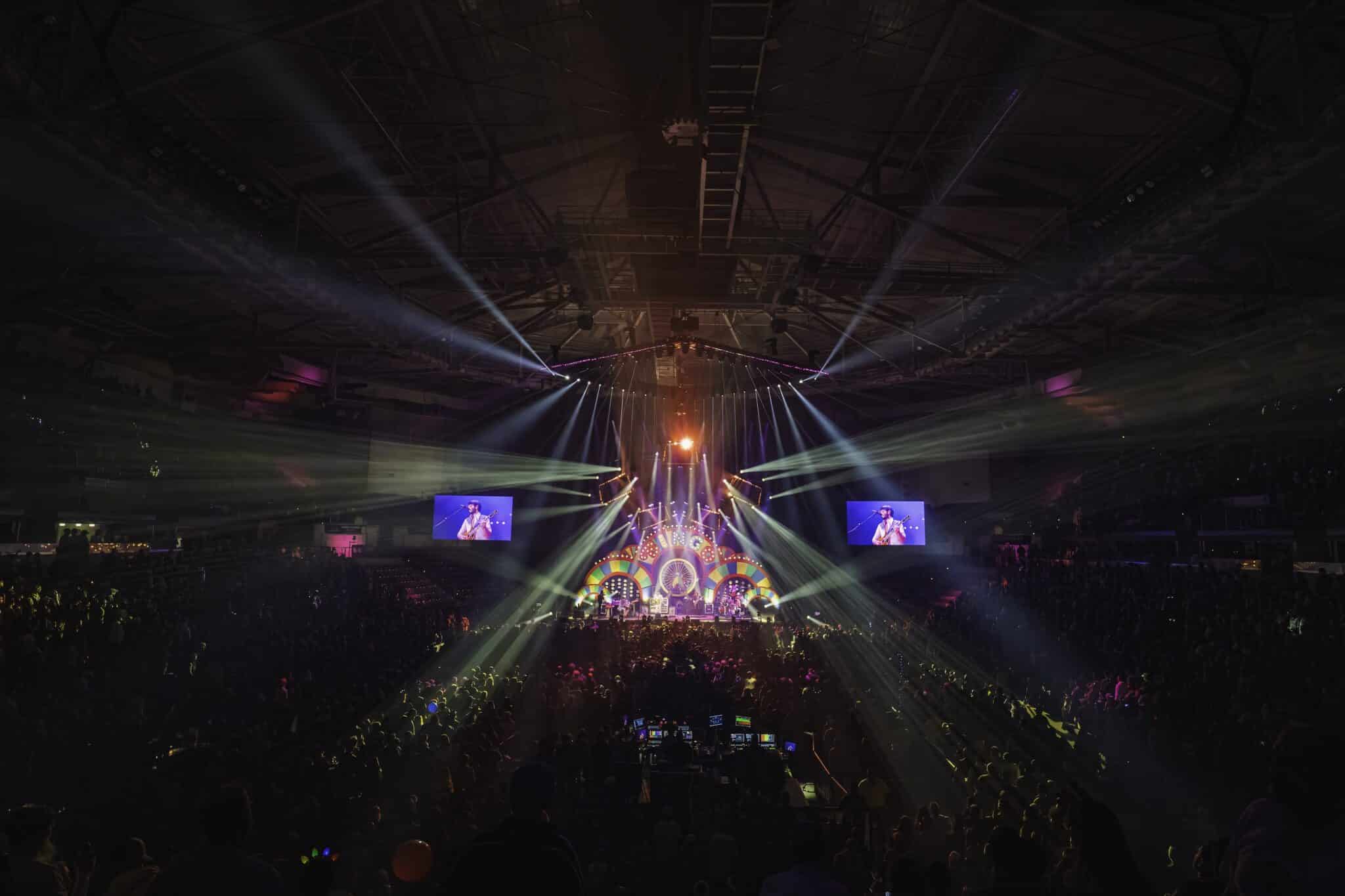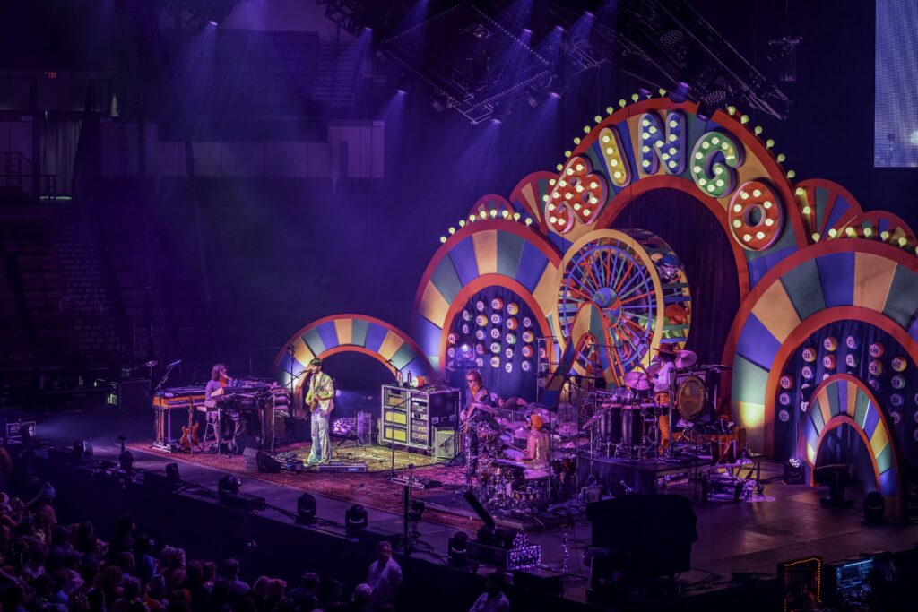 Goose brought their 11th annual holiday celebration, Goosemas, to the North Charleston Coliseum this past weekend. This year’s theme revived a concept from their 2020 Bingo tour including 70’s themed game show antics including an emcee named Lucky Lou, dunk tanks, inflatable flamingos, and a bingo wheel which would draw the songs to be played during the 4+ hour concerts each night.