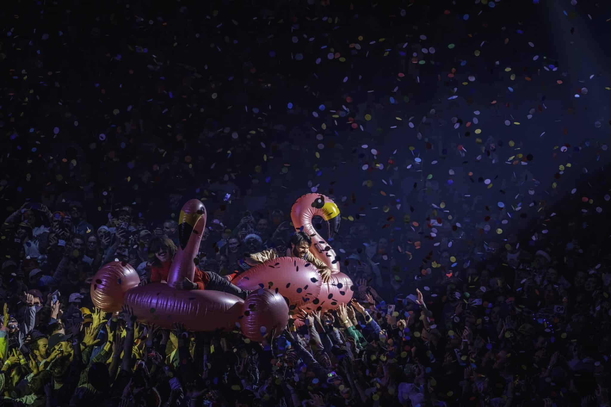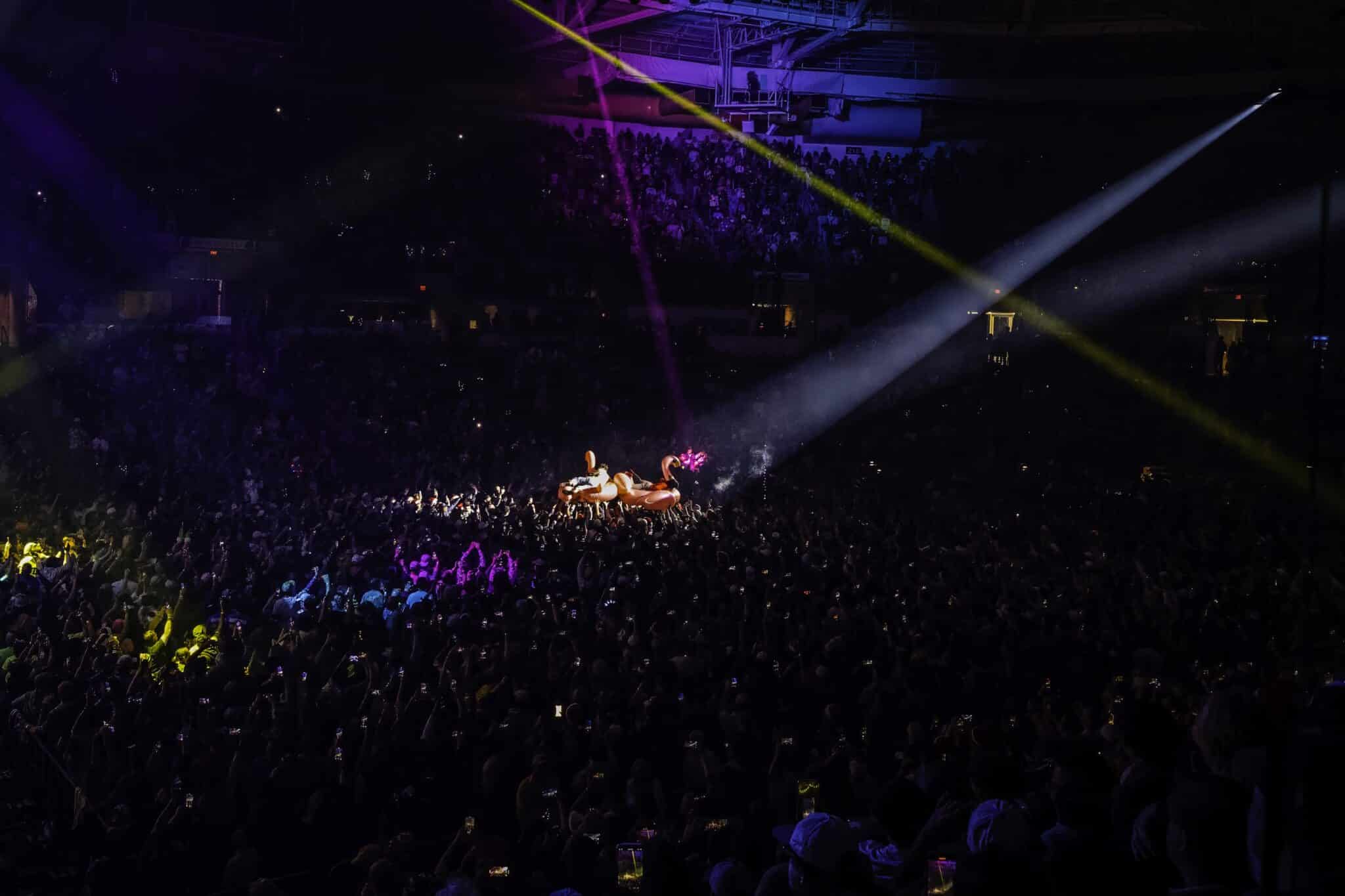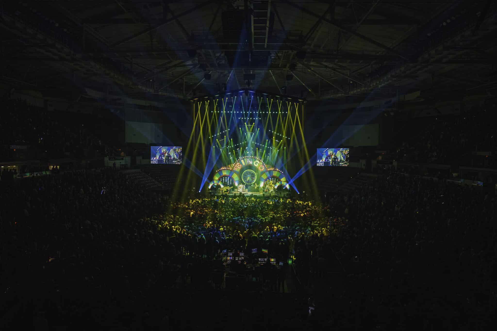 Goose brought their 11th annual holiday celebration, Goosemas, to the North Charleston Coliseum this past weekend. This year’s theme revived a concept from their 2020 Bingo tour including 70’s themed game show antics including an emcee named Lucky Lou, dunk tanks, inflatable flamingos, and a bingo wheel which would draw the songs to be played during the 4+ hour concerts each night.
