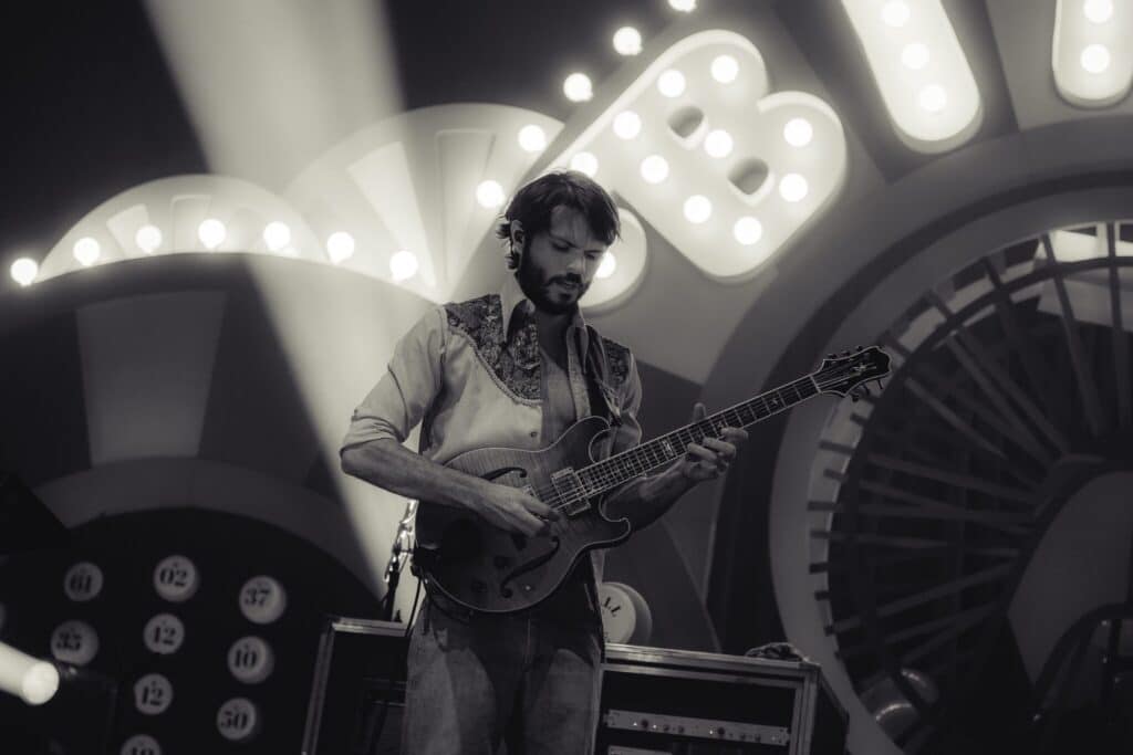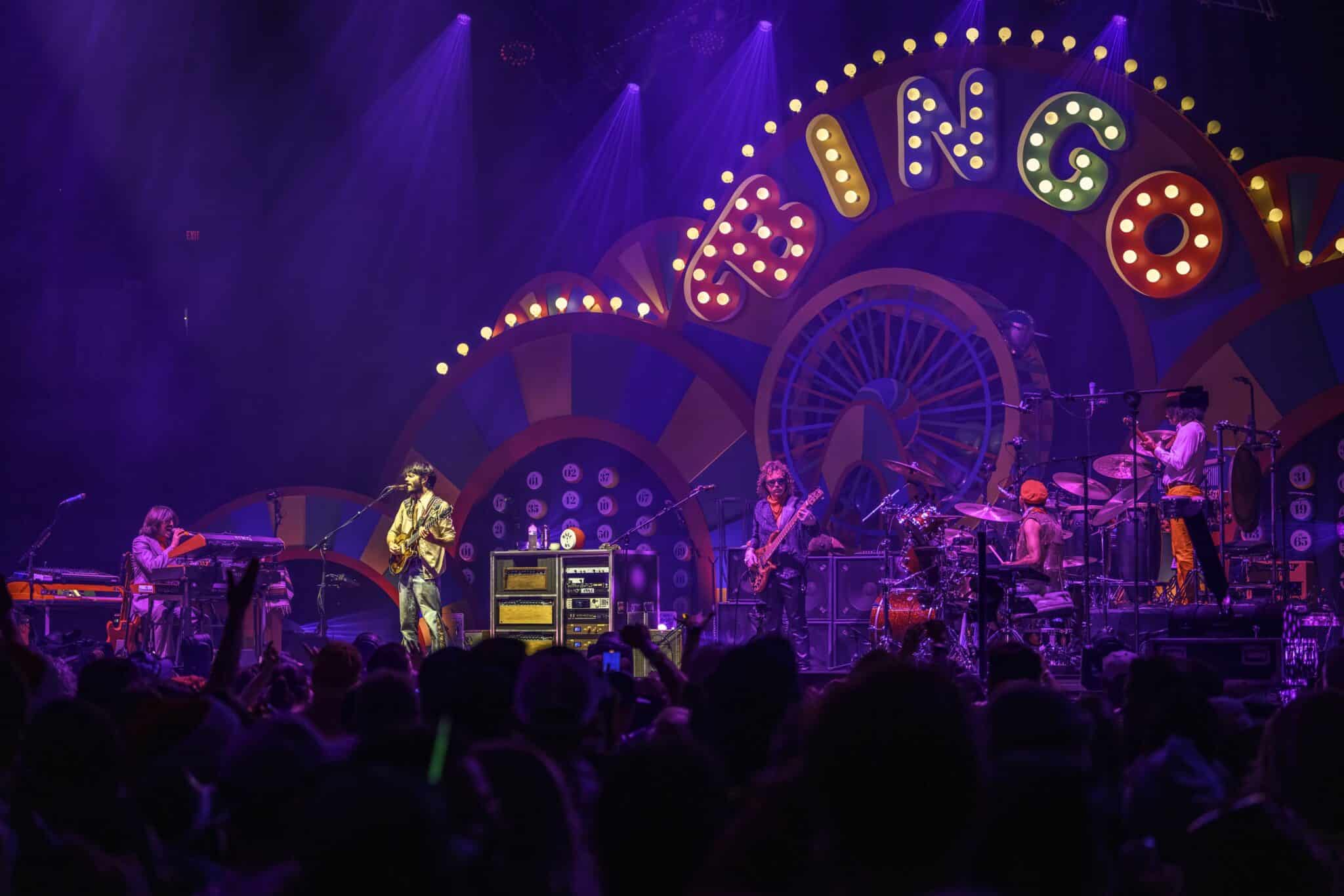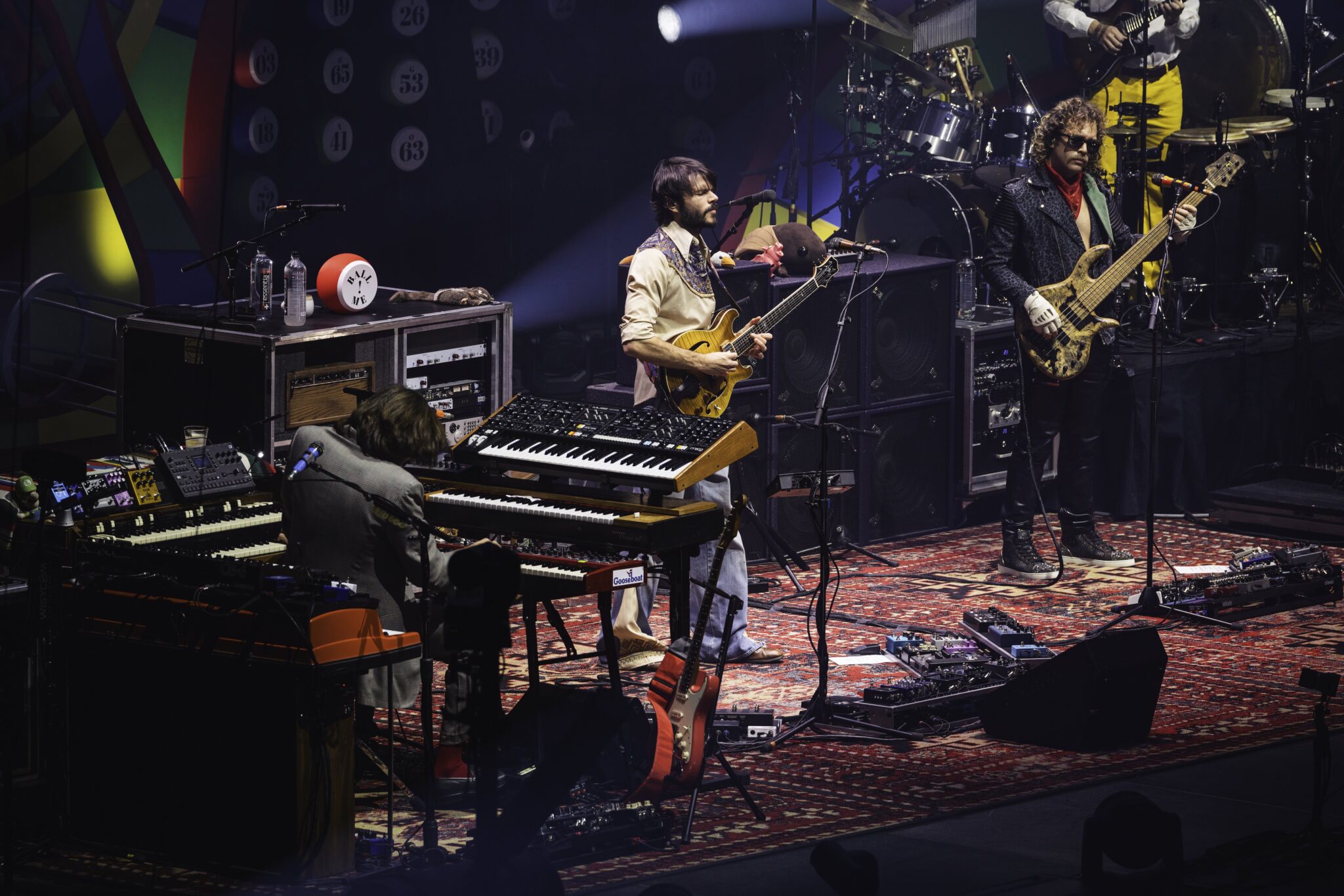 Night two gave off a more seamless approach to bingo night. Instead of waiting until the end of songs for a new bingo draw, they pulled for balls in earlier stages of songs, prompting them to figure out how to transition from one song to the next. After the same intro as the night before, the band pulled “Madhuvan and “Borne” before pulling Bonus Ball #5 and performing Paul Simon’s “Slip Slidin’ Away”.
