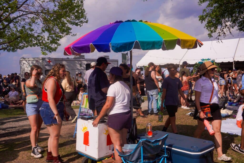 I needed a snack break during The Heavy Heavy. The rain had slowed to more of a pitter patter, and I ate an ice cream cone from local dessert genius Life Raft Treats under the flimsy shelter of a tree as I listened to the crowd-pleasing blues rock from afar. People ran from the food area to see the band cover Father John Misty’s “Real Love.”