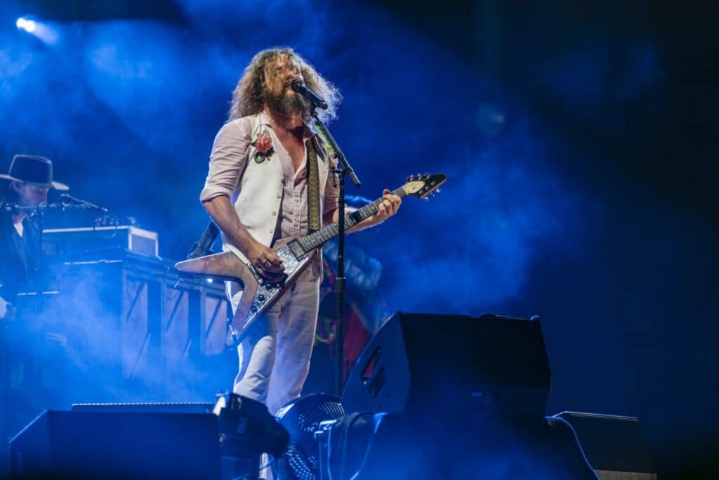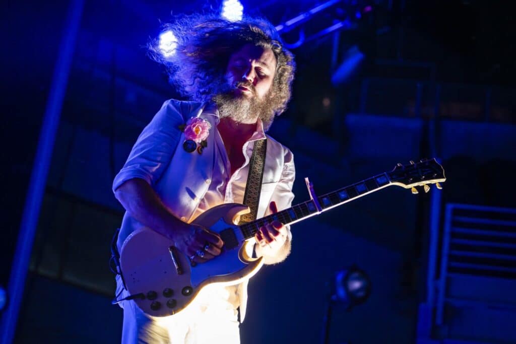 “Off the Record” into “Least Expected” followed, and then the fan-and-band favorite, “Touch Me I’m Going To Scream, Pt. 2.” Now the set was fully rolling, and Jim James was out front in all-white, doing his maestro bit with the crowd.