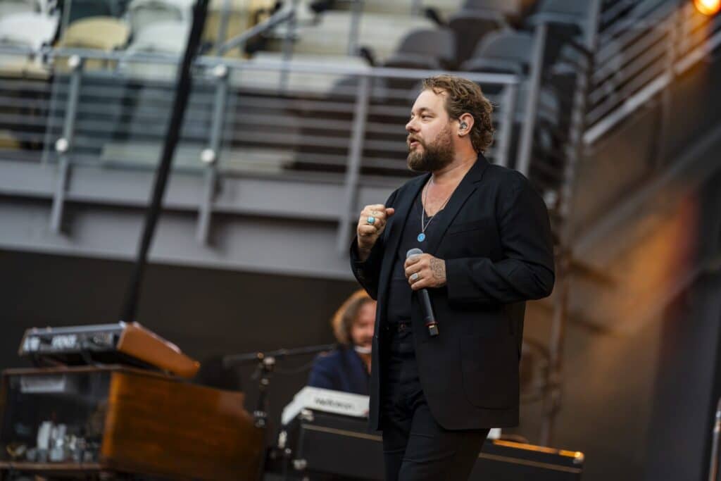 The Night Sweats brought a big band sound that elevated Nathaniel’s booming bluesy vocals through the layers of the stadium. For the peak of the set Nathaniel pulled out the electric to lay down some heavy rock and blues riffs, reminiscent of Bob Seger in his prime, with a dash of B.B. King.