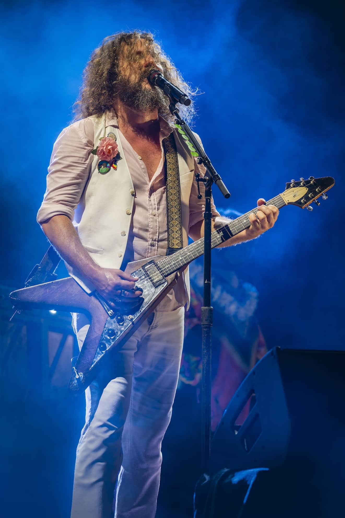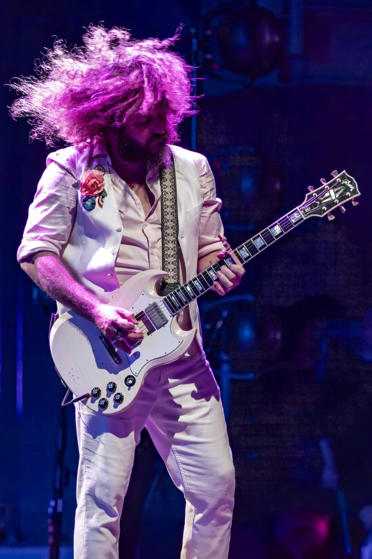 “Off the Record” into “Least Expected” followed, and then the fan-and-band favorite, “Touch Me I’m Going To Scream, Pt. 2.” Now the set was fully rolling, and Jim James was out front in all-white, doing his maestro bit with the crowd.