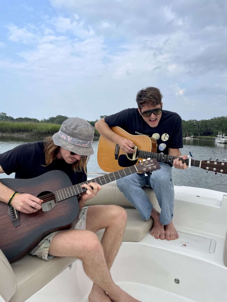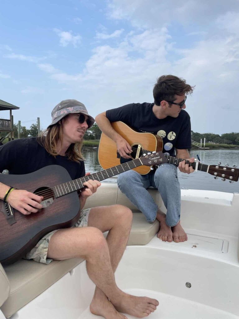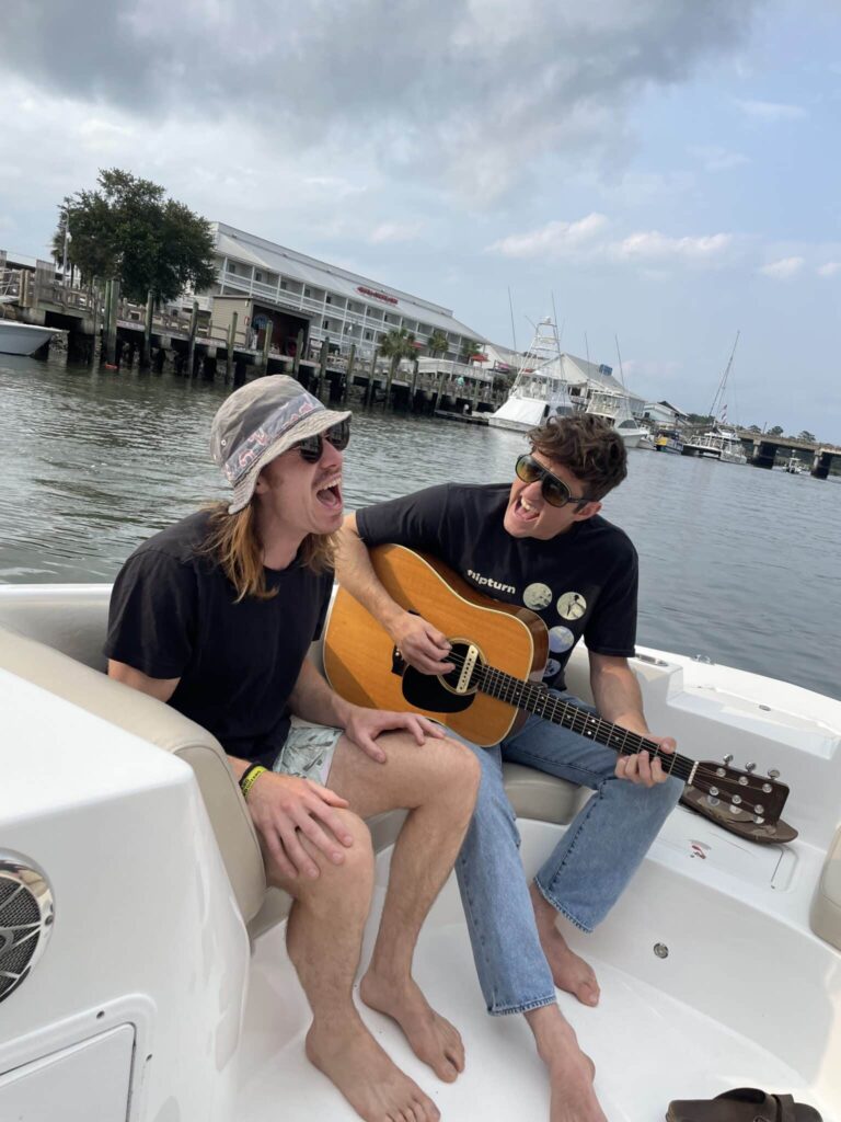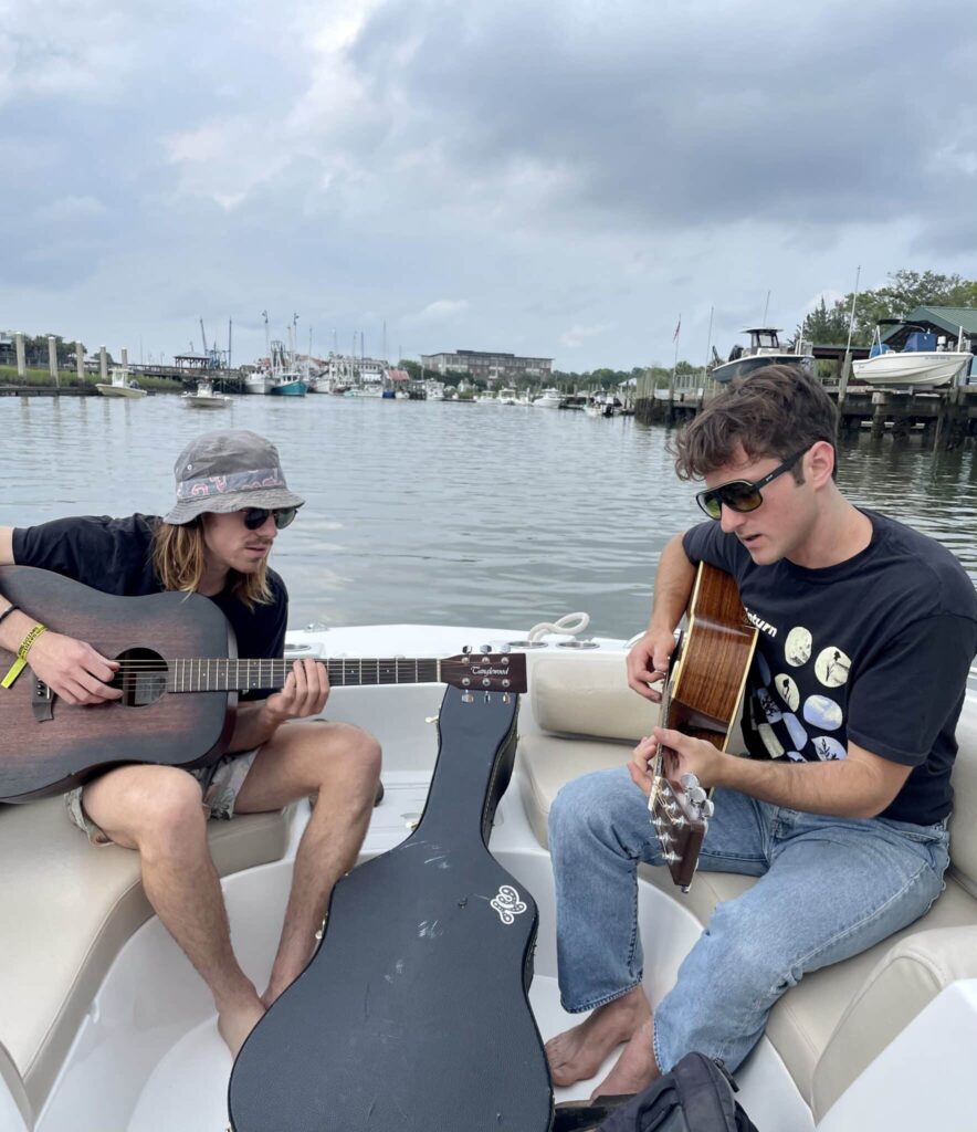 On a surprisingly temperate day in early June that was supposed to be dotted with thunderstorms, I sat down on the bow of a Hurricane with Selby Austin and Darby McGlone, the dual frontmen of local indie rock band Easy Honey. We cruised along Shem Creek, and I kept my fingers crossed that the clouds would remain far in the distance.