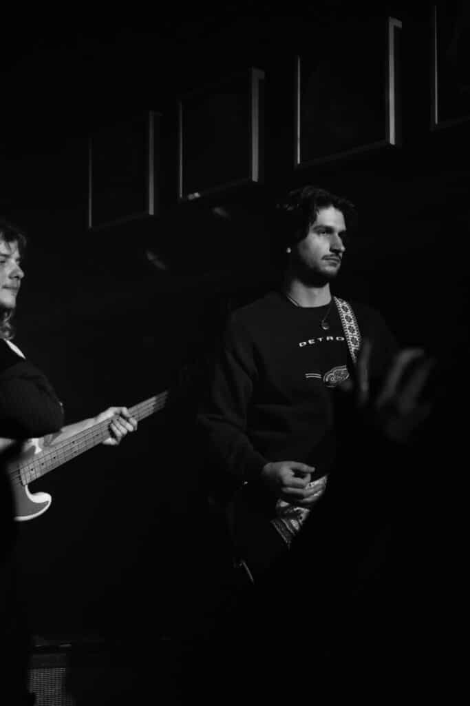 After more than twenty minutes of puzzlingly helping them set up, “We look around at the people going in the house and realize these people aren’t coming’ to see us,” Brouwer laughed at the awkward moment. We had arrived at the frat party by mistake.