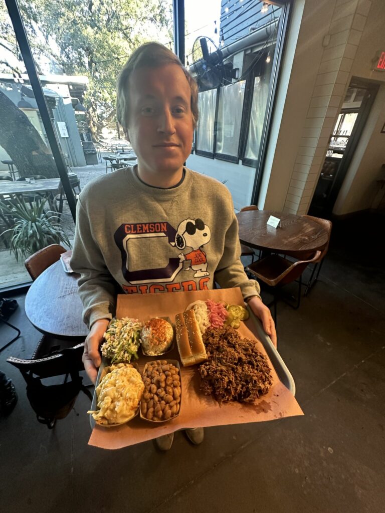 “My go-to order there is always the ‘Chopped USDA Prime Brisket.’ Not only is it delicious, but it’s cut fresh right in front of me. I dress it with vinegar based sauce and drift away into a smokey paradise,” he said.