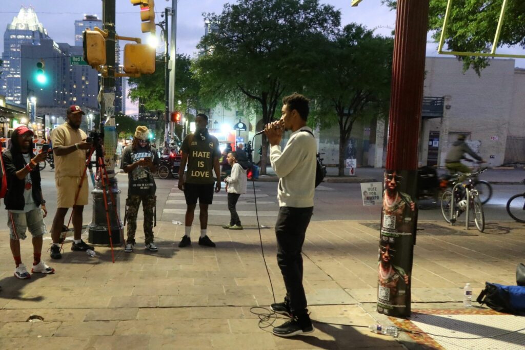 Anfernee, a South Carolina-born rapper, is someone who I spent a lot of time with in Austin. We met up for a full day and explored 6th street together, catching live music at Side Bar and then stumbling across a DIY, open mic hip-hop showcase on the corner of 6th and Red River, “Cookin on the Corner.” Anfernee hopped up there and cooked that corner to a delicious level.
