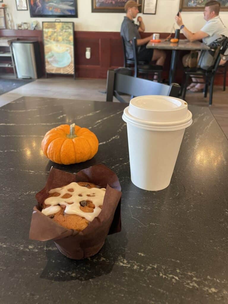 While the patio was too crowded for me to enjoy some fresh air when I visited the West Ashley Highfalutin location, I was delighted by the vegan chocolate chip pumpkin muffin that I paired with my drink.