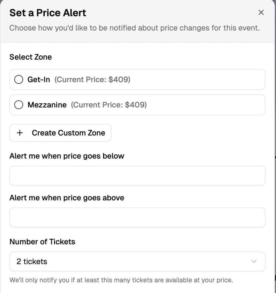 Set Price Alerts for Specific Events