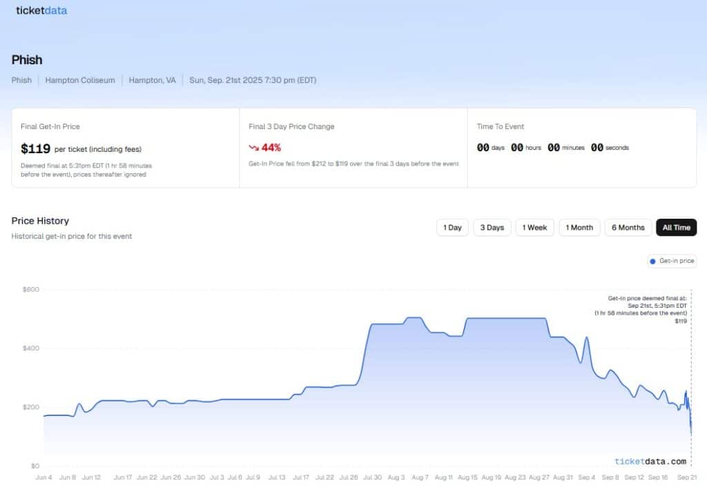 Even for high-demand events, TicketData provides access to trends that allow you to make informed decisions when timing a purchase.